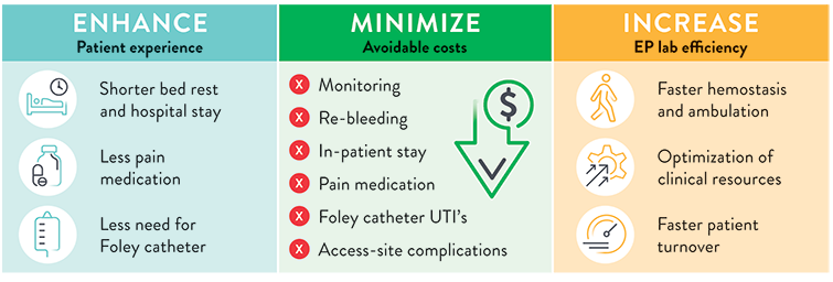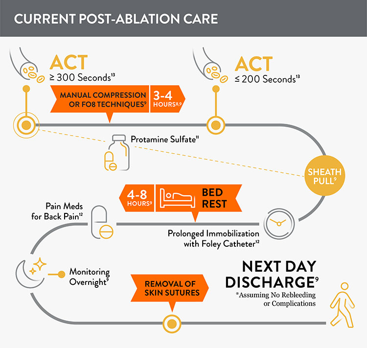 - The typical EP lab post-procedure process requires the patient to remain immobilized for prolonged periods of time, which is a source of patient discomfort.9