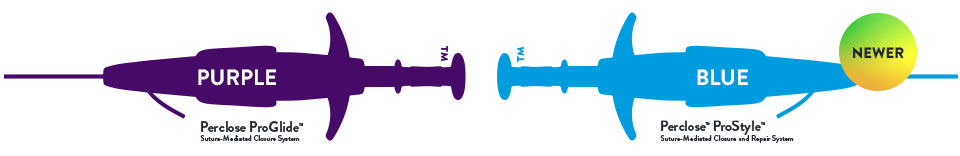 The Perclose™ ProStyle™ closure device achieves rapid hemostasis of femoral access sites by approximating the edges of the vessel wall with a surgical suture. The benefits of suture-mediated repair include promoting primary intention healing with less scarring18 and decreased time to hemostasis, ambulation, and patient discharge.4,19