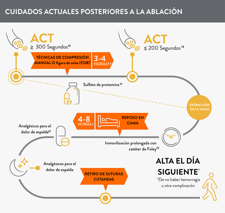 - Anticoagulación periprocedimiento a dosis completas, que puede dificultar una hemostasia y rápida y requerir inmovilización prolongada.9,10