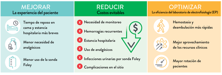 Sí. El alta el mismo día ha demostrado ser segura y contribuye a reducir los costos totales de atención, además de mejorar la experiencia del paciente. El uso de dispositivos de cierre vascular facilita su implementación hospitalaria.⁴,¹⁷,²⁰,²¹