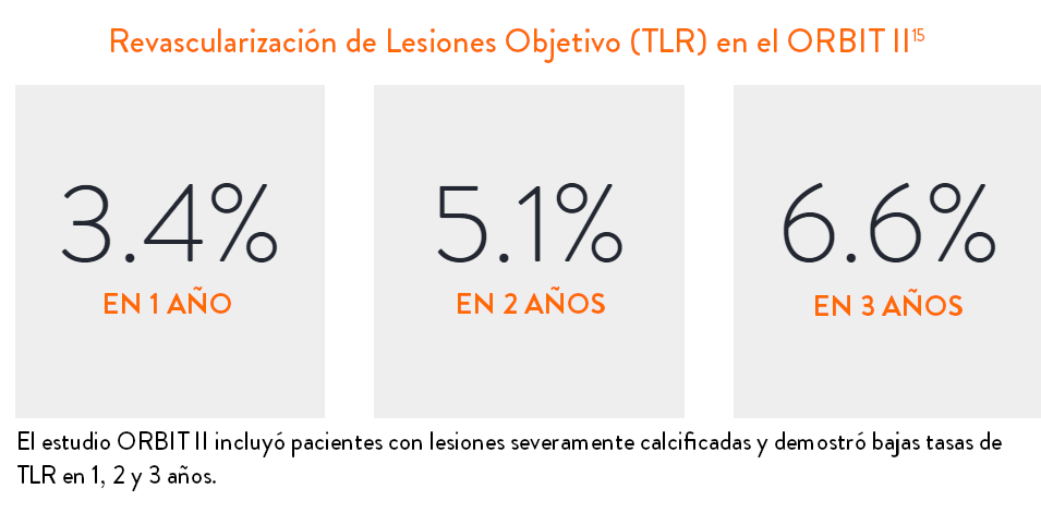 Cruce de más del 99% de las lesiones con menos del 2% de pre-dilatación en el estudio ORBIT II.1,10 - Lesiones Nodulares