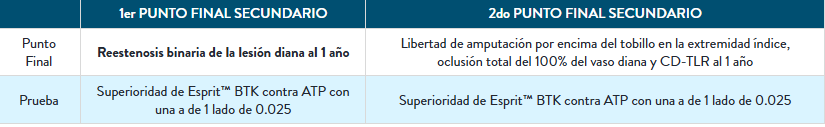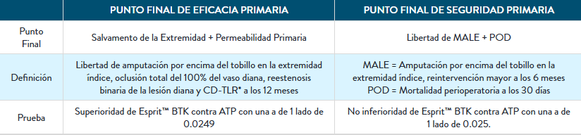 - 261 pacientes aleatorizados (2:1 Sistema Esprit™ BTK vs. ATP†)