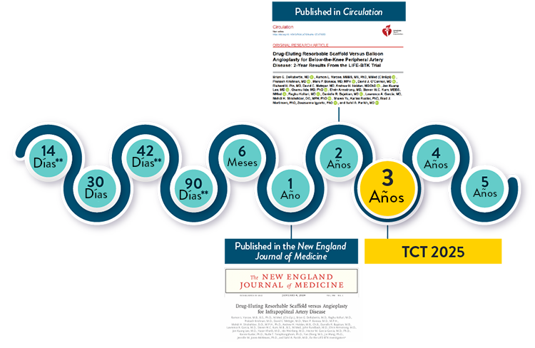 - Parikh, S., Three-Year Outcomes of the LIFE-BTK Randomized Controlled Trial Evaluating the Esprit™ BTK Drug-Eluting Resorbable Scaffold for Treatment of Infrapopliteal Lesions, Presented at TCT 2025.