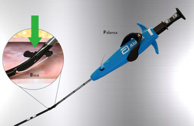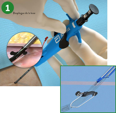 1. Avanzar el dispositivo y levantar la palanca (desplegar la base) |