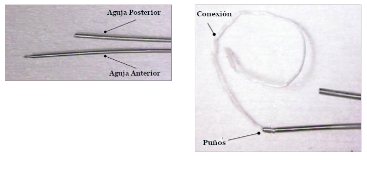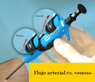 2. Mantener la retracción y presionar el émbolo (desplegar las agujas) |